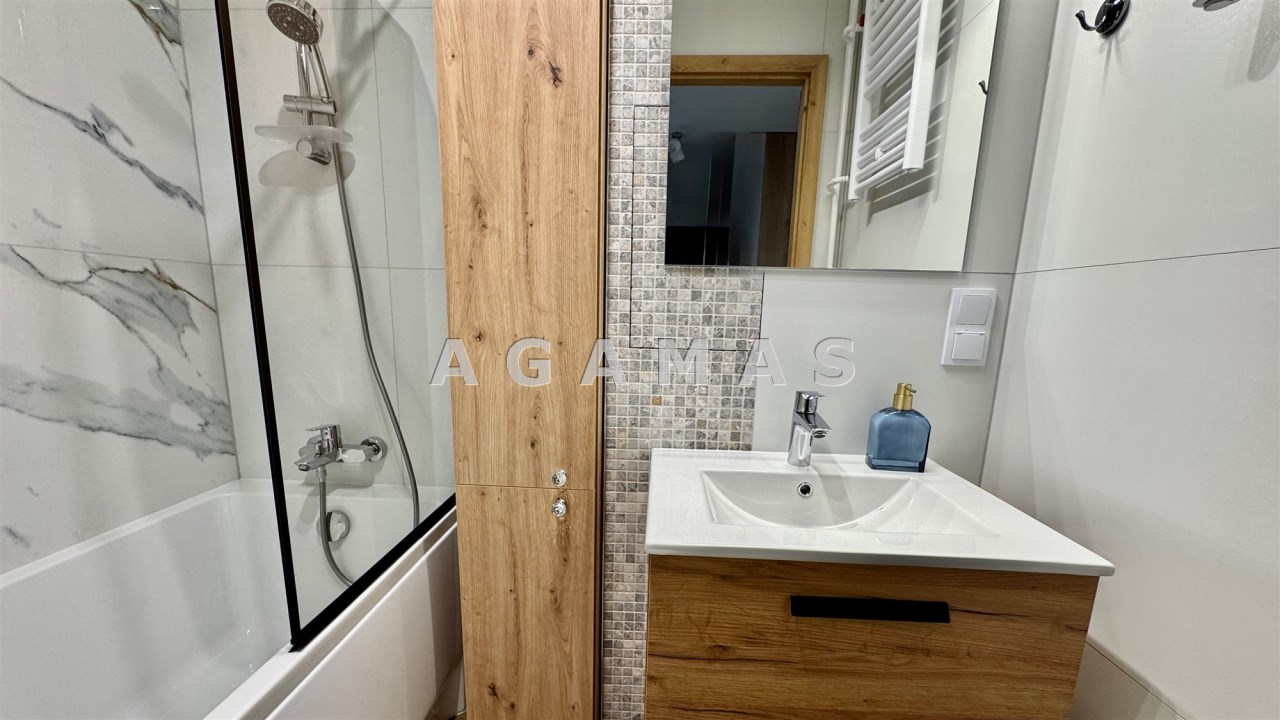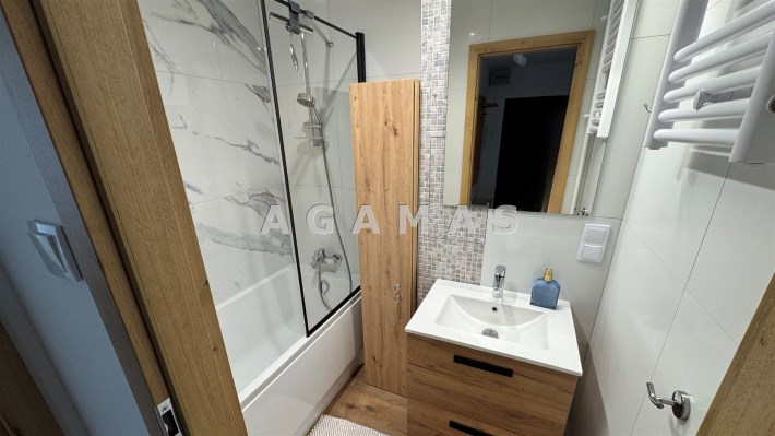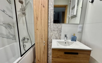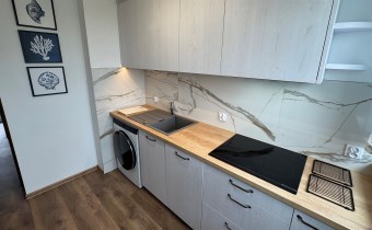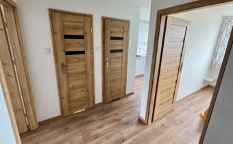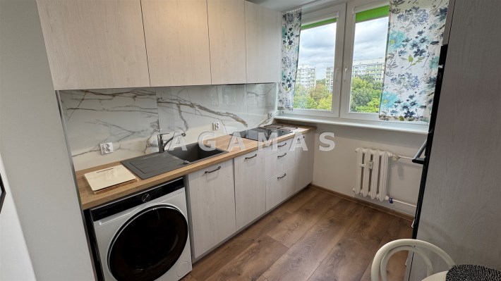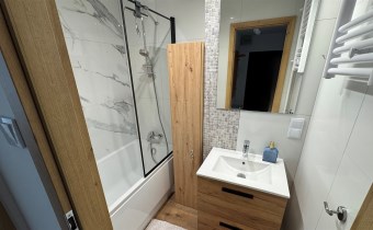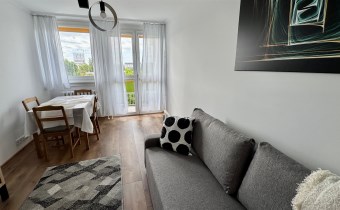 Powierzchnia; 42 mkw. Pełen rozkład tzn. wejście do wszystkich pomieszczeń z przedpokoju, dwustronne. Pokój dzienny, umeblowany z przylegającym balkonem (strona południowo zachodnia) z ładnym widokiem na Górę Ślężę i budynek Sky Tower. Sypialnia z łóżkiem, szafa 2-u drzwiowa. Kuchnia z nową zabudową wyposażona w AGD m.in. piekarnik, zmywarka. Osobno WC i łazienka. W przedpokoju duża szafa. Mieszkanie bardzo funkcjonalne.