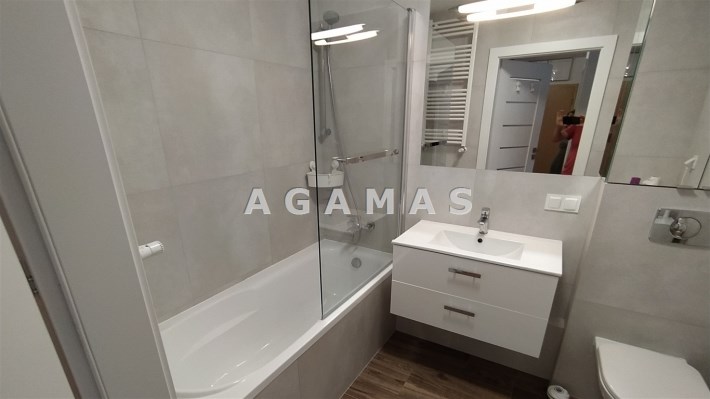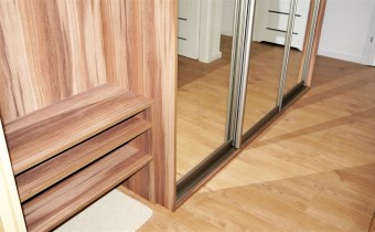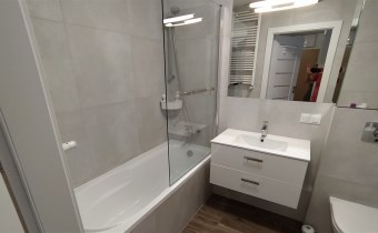 W przedpokoju zamontowana jest duża szafa w zabudowie, w łazience jest wanna z funkcją prysznica.